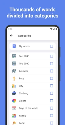• Add your own words and categories easily: you can create your own word base you want to master first.