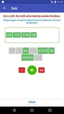 - Support multiple languages (Translate from 32 languages to Korean) - Quiz game (choose correct answer and rearrange these words to make meaningful sentences) will improve word and phrases - Perfect search and manage your favourite items system - No internet connection required