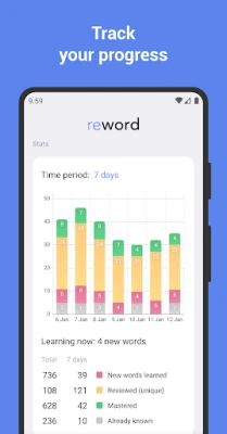 • Spaced repetitions really work: ReWord has a science-based approach to memorizing foreign words so you can learn languages at the highest efficiency.