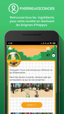 Etape après étape, retrouve avec Happyz les ustensiles et les ingrédients virtuels éparpillés sur l’ensemble du site. Ce jeu de piste t’emmènera aussi bien à l’intérieur qu’à l’extérieur de la résidence.