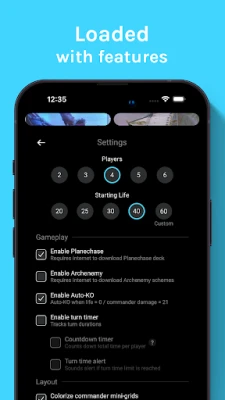 - Quickly reset games to starting life of 20, 25, 30, or 40. Optionally, let the app randomize seating for you to keep things interesting