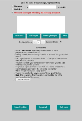 Enter any linear programming problem or system of linear inequalities in two variables.