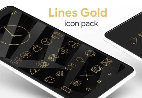 Lines Gold (Free Version) is a simple minimalist, flat & gold texture icon pack with outlined icons that have transparent centers that blend in well with your backgrounds. Gold icons feature clean & flat handmade designs. Color adjusted wallpapers included.