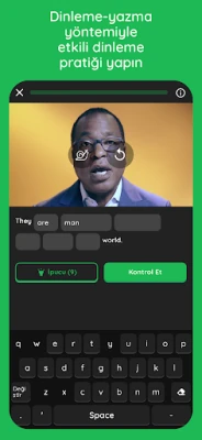 - Videolardaki cümleleri dinleyin ve doğruluk konusunda anında geri bildirim alın.