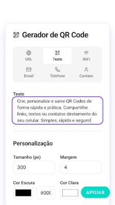 ✅ Gere QR Codes para links, textos, Wi-Fi, telefone, e mais