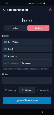 - Transaction Management - Add, edit, and categorize transactions as they happen