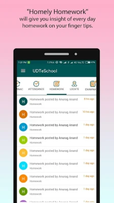 Teachers can take attendance of their class. They can give homework either by writing the text or taking a snap. Teachers can also assign exam marks through this mobile app.