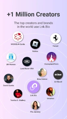 Bir Lnk.Bio sayfasıyla takipçileriniz tek bir tıklamayla tüm bağlantılarınıza erişebilir ve internette sizi kolayca takip edebilir. Lnk.Bio ile takipçileriniz tüm bağlantılarınızı ve projelerinizi nerede bulacaklarını bilecek.