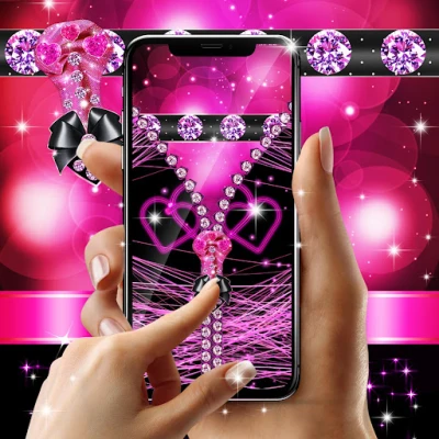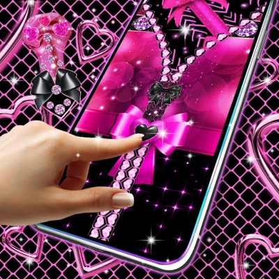 Locker black and pink is a classic lock screen for android phones that unlocks using a zipper. Just drag down the zipper and the magic will happen.Choose a black and pink wallpaper with cute pink bows and sweet diamond hearts for the zipper.Make your lock screen cool with unique pink and black wallpapers with stars, bows, hearts and diamonds !