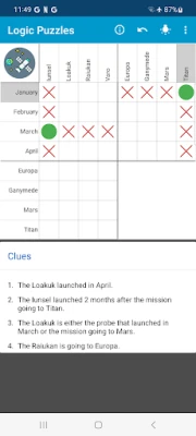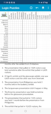 Enjoy Logic Puzzles with 100 unique brain puzzles of increasing difficulty and multiple sizes with no ads. These logic puzzles will keep your brain active and improve your cognitive skills. Smart Hints will teach your brain how to play and help your brain learn new patterns. Use the clues to fill in the grid and solve each logic puzzle. Work your way up from from a logic puzzle beginner to master! Use unlimited Smart Hints to see exactly which clue applies to the current board and why. Start with small 3×4 logic puzzles or challenge your brain with huge 4×7 cell puzzles.