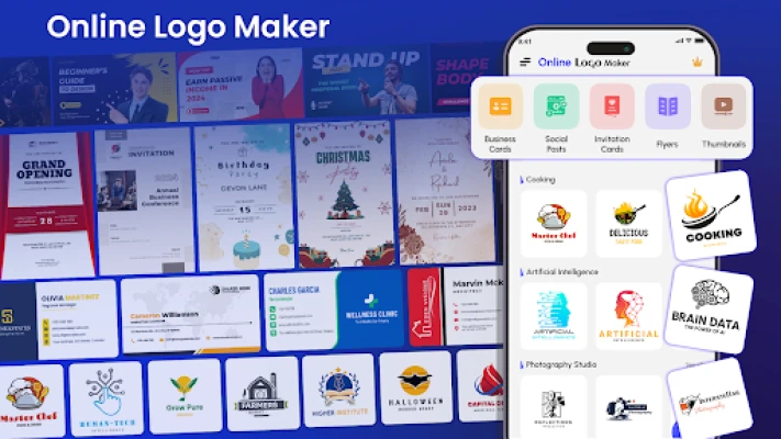 Logo Maker is a simple design app that helps you create logos in minutes. Designed for beginners, no prior design experience required.. This application helps you make logos, business cards, invitation cards, flyers, and thumbnails as well. The modern logo creator gives you all essential tools to design quickly.