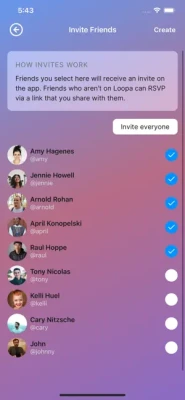 Loopa is a local social app that lets you send invites for private events to all (or a selection) of your friends. Invitees can RSVP on a first come first serve basis until all spots are filled. Those who join are part of a dedicated group chat.