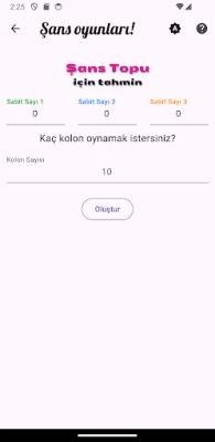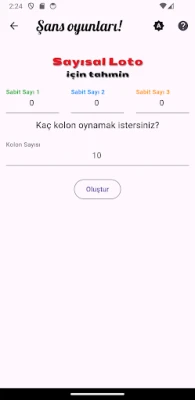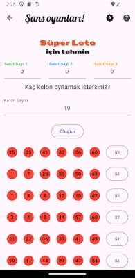Çılgın Sayısal Loto, Süper Loto, On Numara ve Şans Topu oyunları için istediğiniz ölçüde tahmin oluşturan bir yardımcı uygulamadır. Uygulama, herhangi bir algoritma üzerinden değil, rastgele üretilen sayılar üzerinden tahmin üretir. İlgili oyunlar için doğru tahmin garantisi veremez, bu tamamen kullanıcının şansına kalmıştır.