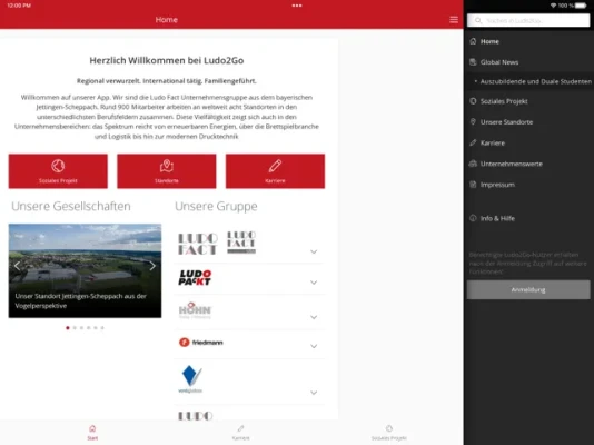 Ludo2go gewährt allen Interessierten, Mitarbeitern, Bewerbern, Partnern und Kunden einen Einblick in die Welt der Gruppe. Sie finden News und Informationen aus der gesamten Unternehmensgruppe, aktuelle Stellenangebote, Neuigkeiten über unser soziales Engagement in Burkina Faso und vieles mehr. Viel Freude beim Entdecken der App!