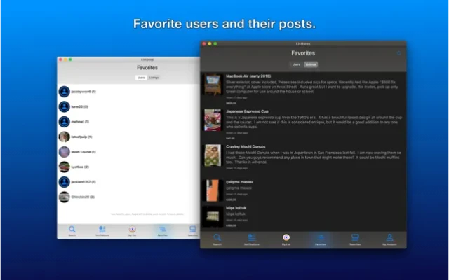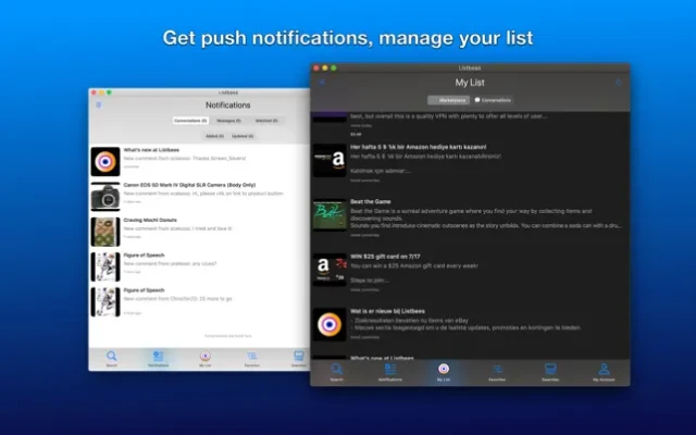 - Get push notifications from your favorite users or matching saved keywords.