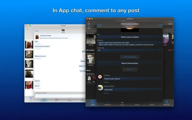 Buy, sell, social conversations and marketplace, you can list anything and start messaging locally, or buy sell products with no listing fees