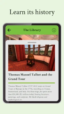 - On-site AR experience: When visiting Margam Castle, unlock a fully immersive 1:1 AR recreation of the rooms as they once were, with interactive hotspots that reveal hidden historical facts, artefacts, and stories. The on-site AR is seamlessly integrated using location services and QR codes, enhancing your visit with digital storytelling.
