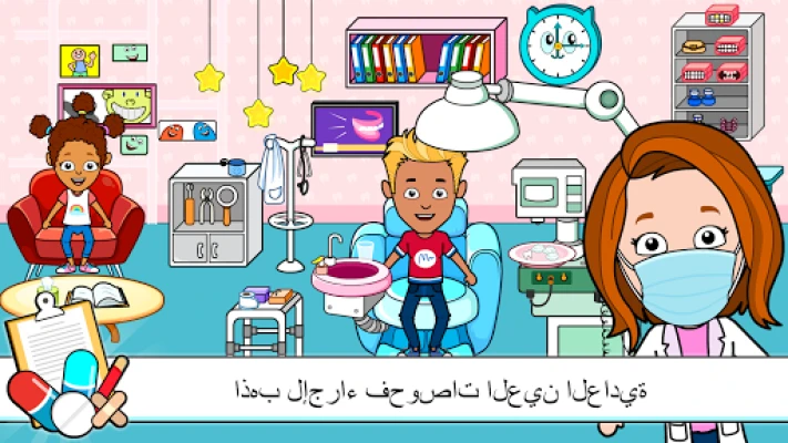 اللعب إما كمريض أو صيدلي أو طبيب. استكشف كل طابق من منطقة الإسعاف إلى غرفة التصوير المقطعي المحوسب. في مستشفى تيزي تاون، لديك مجموعة واسعة من الخيارات المهنية مثل أطباء الأسنان، أخصائي العظام، أخصائي الأشعة، أو الجراح العام. فما الذي تنتظره، قم بتنزيل هذه اللعبة الآن مجانًا!