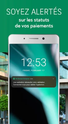 - Activer les notifications et être alerté sur le statut de vos opérations, le suivi des paiements émis, la gestion des bénéficiaires et le suivi des utilisateurs