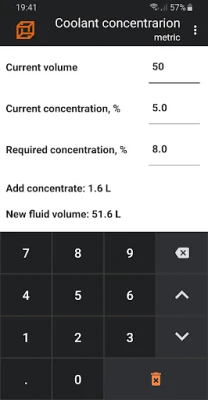 The calculator allows you to translate and calculate the technological parameters of processing, has a convenient and intuitive interface.