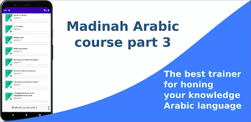 The app for the study of the Arabic language developed according to the methodology of the Madinah course part 3.