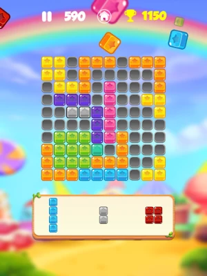 When a row or column is completely filled, the blocks vanish, earning points. Each round, you're given three unique blocks to place strategically.