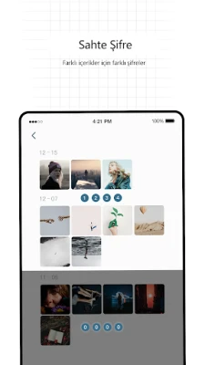 • Sahte şifre oluşturarak uygulamaya girenlerin sadece normal bir fotoğraf albümü görmesini sağlayın