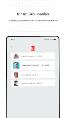 • Çok sayıda başarısız giriş denemesinden sonra izinsiz giriş yapanın fotoğrafını çekin