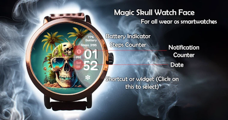 Why you'll love this watch face: 💀 Skull-Inspired Art - Intricately designed skulls paired with detailed, creative backgrounds make this watch face truly one-of-a-kind.