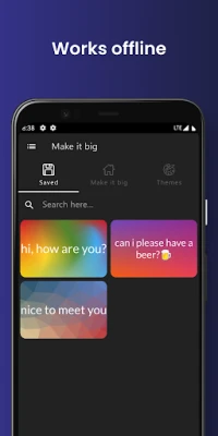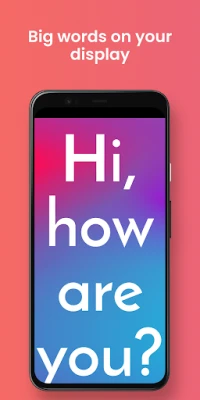 Make it big - Big or large text on your display is a great free app for communicating with other people in times when it is not possible to express yourself speaking. With Make it big - Big or large text on your display you can show large text on your smartphone which will resize itself automatically based on the amount of big text being entered. Make it big - Big or large text on your display was specifically developed to show people that are hard of hearing what the user is saying. Whether from across the room or side by side, Make it big - Big or large text on your display can help show what you have to say.