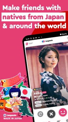 Japon kültürünün canlı dünyasına dalın ve Japonya'daki yerel halkla bağlantı kurun! Langmate, dil alışverişinin, kültürel keşiflerin ve ömür boyu sürecek dostlukların dünyasına açılan kapınızdır.