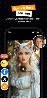 Seamless Sharing: Easily share your stunning face swap video with just a tap. The AI face changer integrates social media sharing options, and it means that you can share videos directly among your followers on various social media platforms like Facebook, Twitter, and more. You spread joy with ease to your audience.