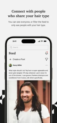 It begins with a hair type quiz. Once you take the quiz you will enter the hair community where you can filter your social feed based on your hair type.