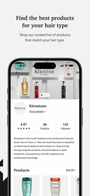 In the product search section you can discover the best products for you, you can search by product type (shampoo, conditioner, etc), or by brand. You can view the ingredients of each product to see if there is anything you want to avoid, and you can shop for that product through the app.