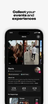 • Discover happenings that represent live events and nightlife entertainment with people sharing their moments