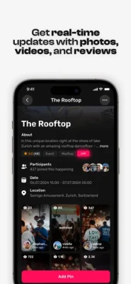 • Pins (photos and videos), offering an authentic insight into the here and now and showcase the real vibe of the event