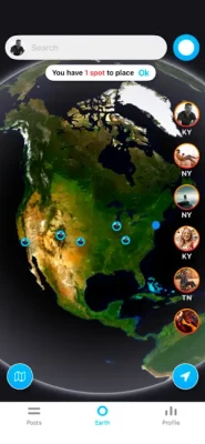• By claiming spots on the world map, you generate 100-foot diameter virtual perimeters (about half an acre) linked to your social media.