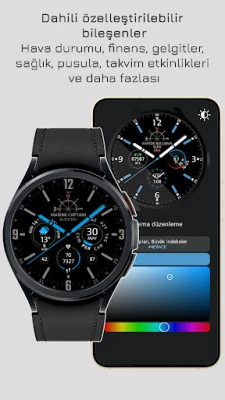 Telefonunuzdaki uygulama, Marine Captain kadranını ayarlamak ve telefonun batarya seviyesini saatlere aktarmak için gereklidir. Kendi temalarınızı yalnızca telefonunuzdaki uygulamadan oluşturabilirsiniz. Marine Captain kadranını saatlerden ayarlayabilirsiniz.