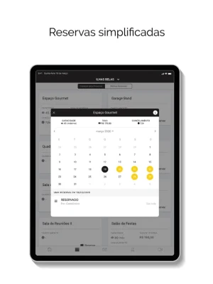 - reservas no salão de festas, mudanças e outras agendas,