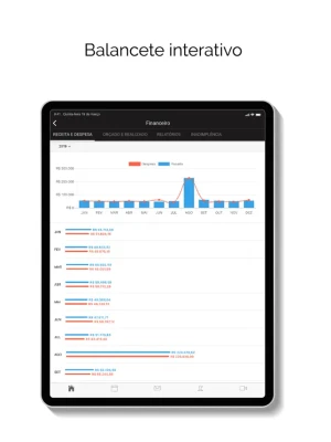 - comparativo de orçado versus realizado (gráficos e detalhamento)