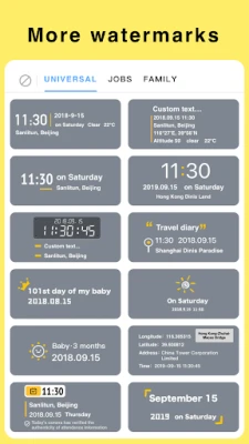 1. Rich watermark templates. It is suitable for taking photos at work, checking in team attendance, engineering management, field work, comprehensive law enforcement, taking evidence, taking photos on travel, taking photos for baby growth, collecting evidence on the scene of traffic accidents, retaining evidence for driving, and taking pictures for homework.