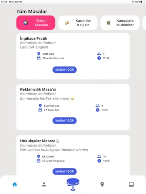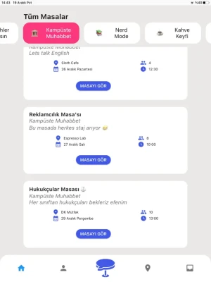 Dilerseniz okul etkinliklerinizi, dilerseniz sosyal aktivitelerinizi, dilerseniz de iş/okul çalışmalarınızı Masa üzerinden planlayıp, yeni insanlarla tanışabilirsiniz.