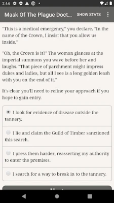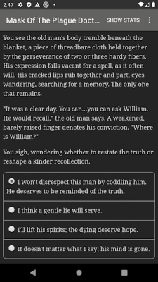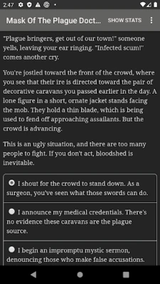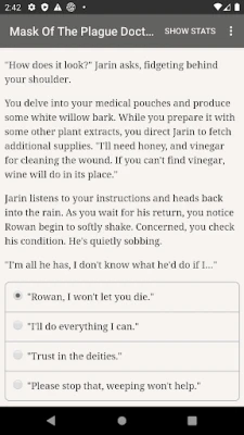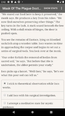 "Mask of the Plague Doctor" is a 410,000-word interactive novel by Peter Parrish, where your choices control the story. It’s entirely text-based, without graphics or sound effects, and fueled by the vast, unstoppable power of your imagination.