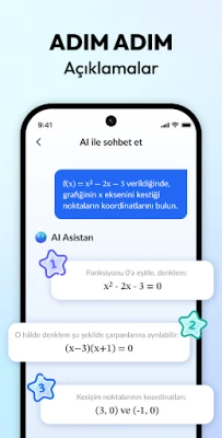 ✔️ Etkileşimli Öğrenme Deneyimi: Sadece cevaplar değil—her çözümün arkasındaki adımları öğrenerek problemi nasıl çözeceğinizi anlamanızı sağlar, böylece öğrenme süreciniz daha etkileşimli ve ilgi çekici hale gelir.