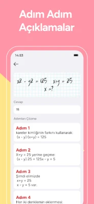 • Etkileşimli Öğrenme: Çözümlerinize etkileşimli diyagramlar, grafikler ve görsel araçlarla ulaşarak matematiği daha kolay ve eğlenceli öğrenebilirsiniz.