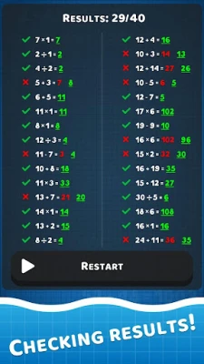 In Learn Maths mode you are not limited with time and after session you can check your results in a table.
