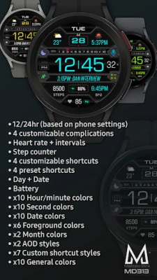 The MD313 is an Digital watch face for Wear OS.