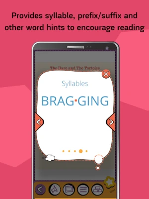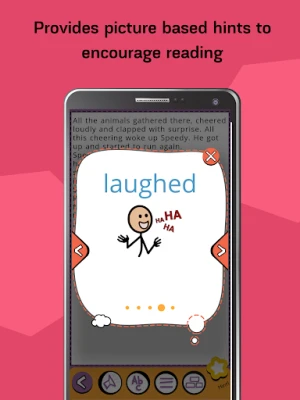 When the child finds it difficult to read a particular word, they can tap the Hint button. This ensures that the child is not discouraged by a new or seemingly difficult word. Additionally, the use of Hints will also stimulate phonemic and conceptual understanding. A variety of Hints available on the app are -
