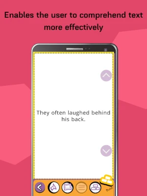 The pencil icon on the reading page helps track the words they are reading.This lowers convergence difficulties while aiding hand-eye coordination. The pointer can be easily re-positioned by double-tapping the new word.