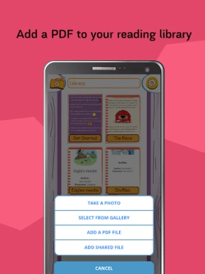 Use any age-appropriate books. You do not need any special PDFs or web resources and can add a page by simply capturing an image with text in it. Several pages can also be added at the same time.